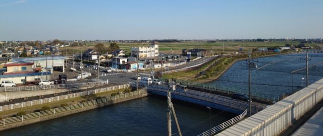 職員さんのご厚意で屋上を勧められ、屋上から水路や遠景を撮影。